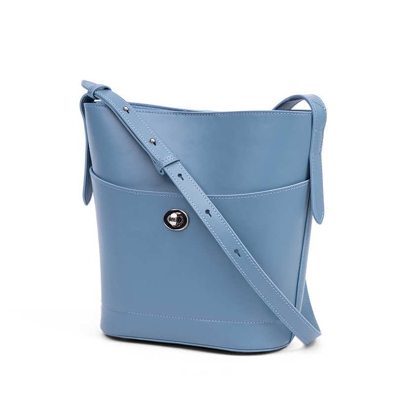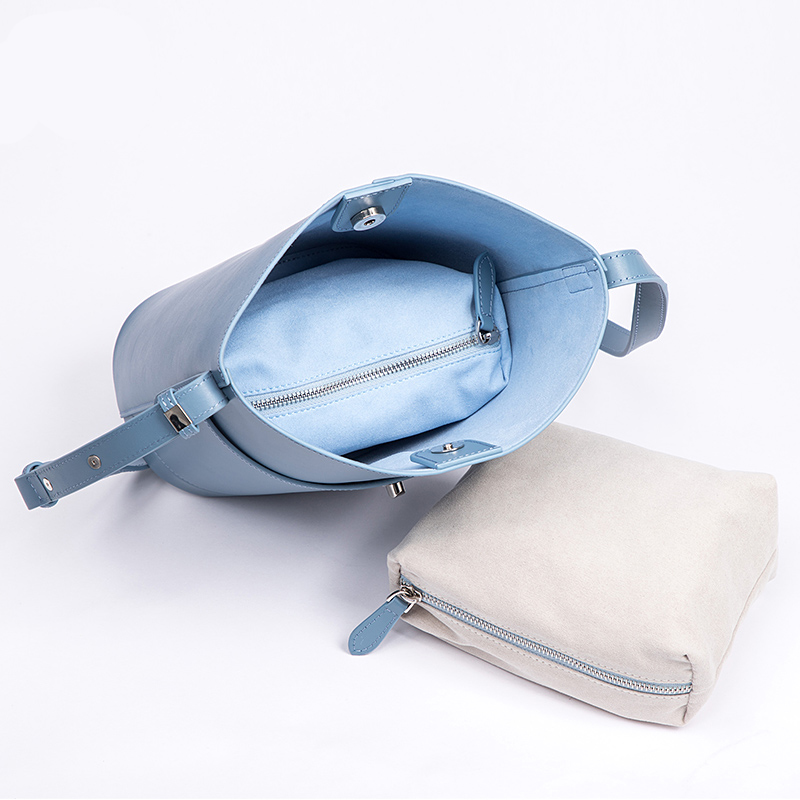 1002020 fashion designer light blue color genuine leather handbag set with the inside pouch