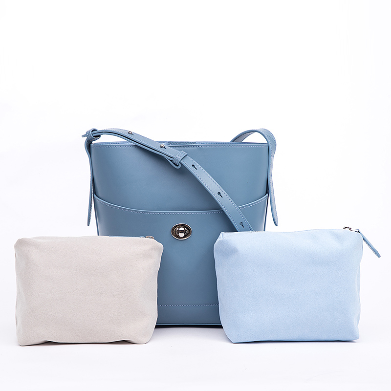 Simple leather handbag set with removable pouch