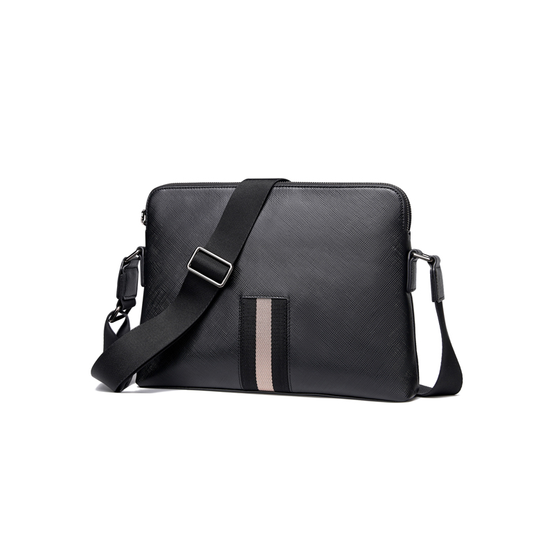 Product Name: Business Men’s Strip Black Real Leather Laptop Crossbody Bags