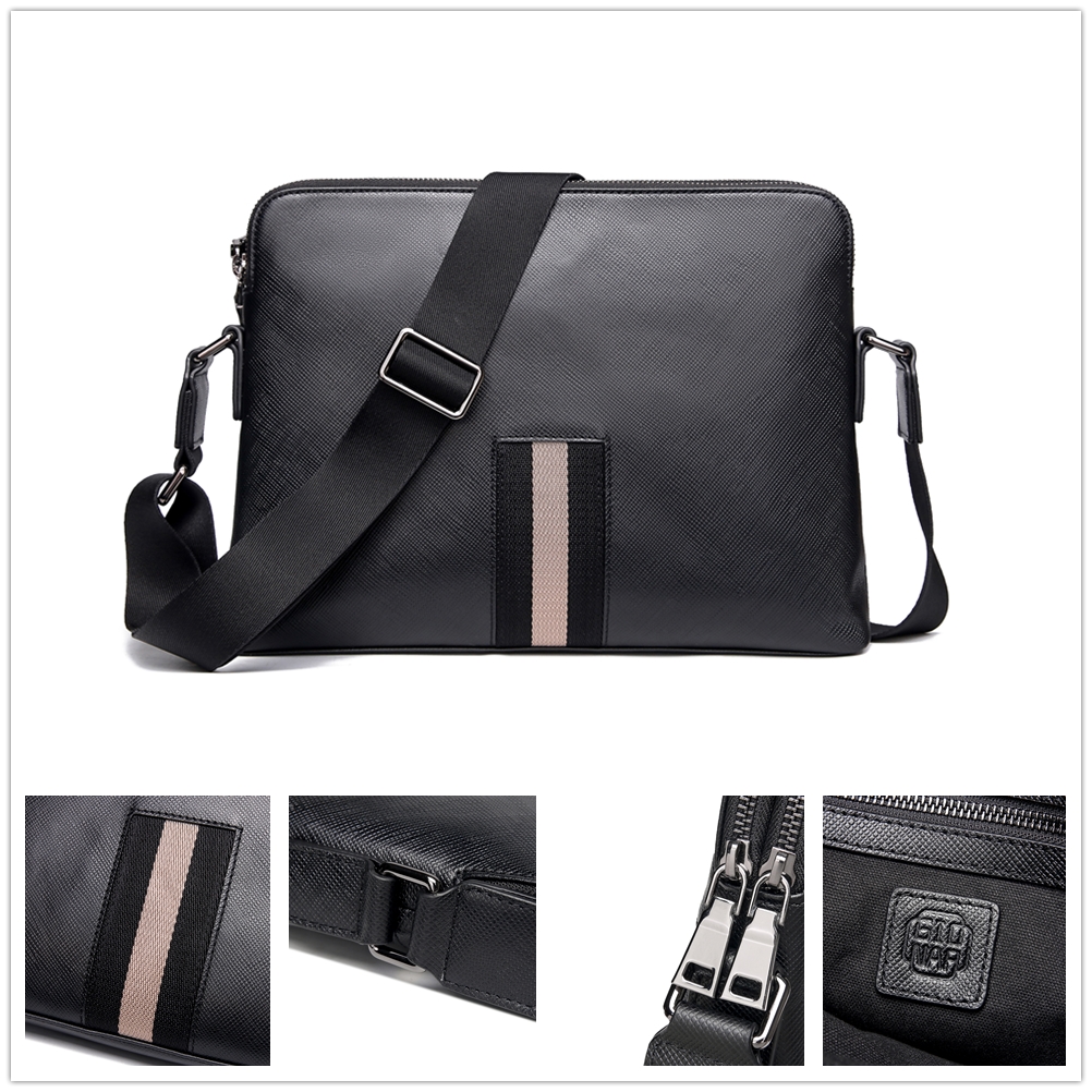 Business Men’s Strip Black Real Leather Laptop Crossbody Bags using YKK zipper and high-quality cowhide. Business Men’s Strip Black Real Leather Laptop Crossbody Bags designed for the businessman what can storage 14″ Laptop and private goods.