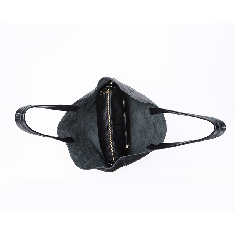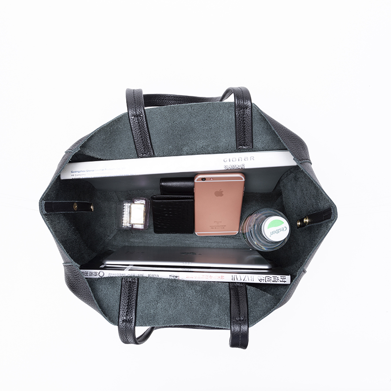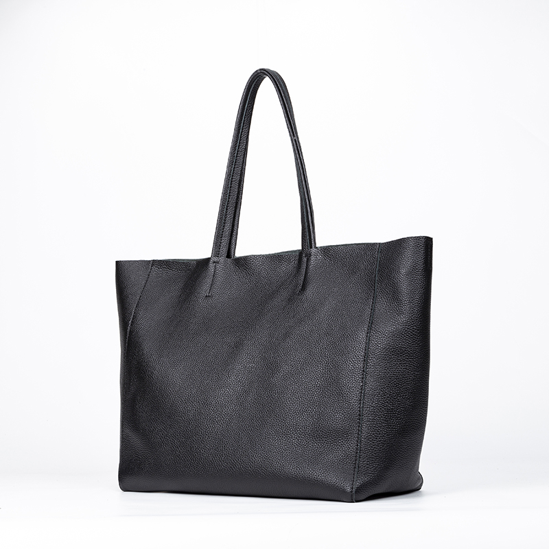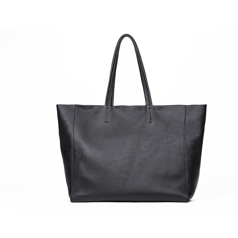 Cheap Price Black Color High Quality grain unlined leather handbag bags set