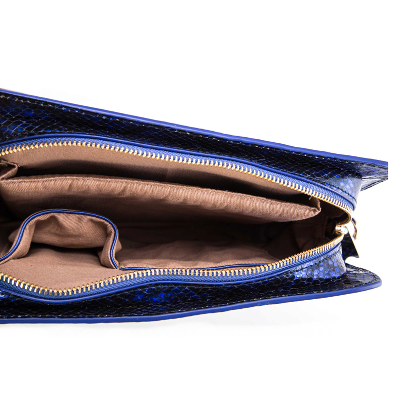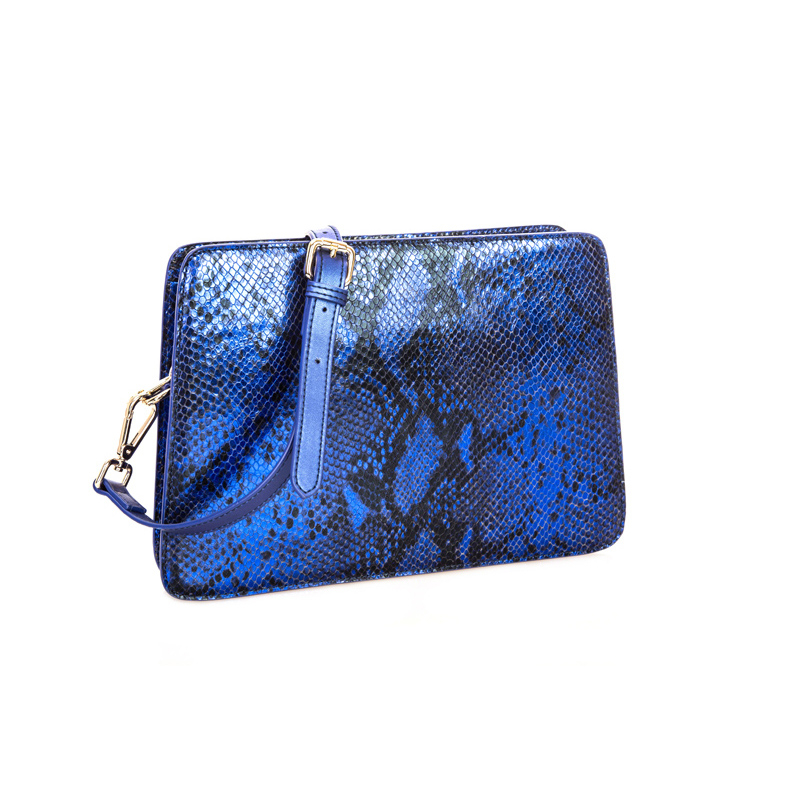 Blue color snake embossed cow leather bags