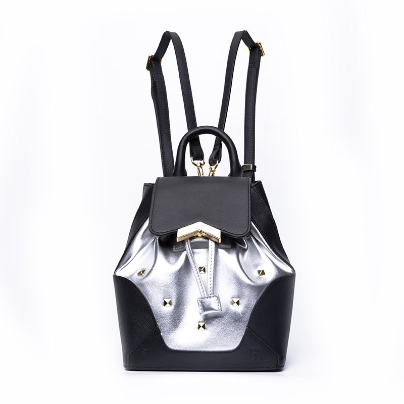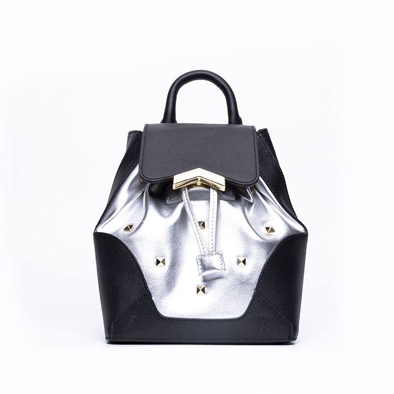 Silver color Calf Leather backpack with studs,can custom with other colors