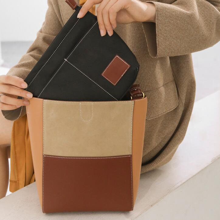 Shape:Women Leather bucket bag
