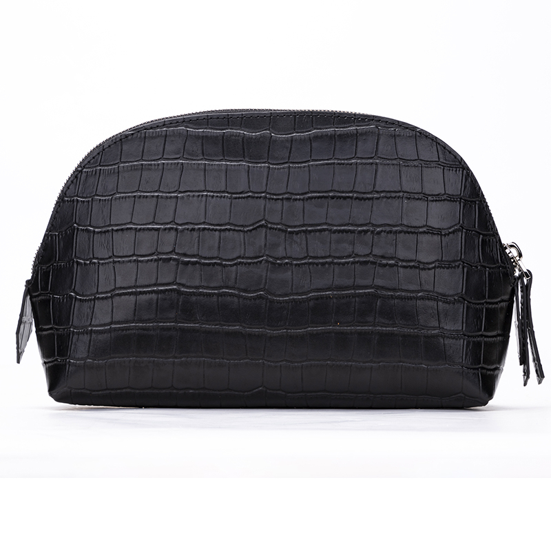 Crocodile Embossed cow leather cosmetic bag with custom logo