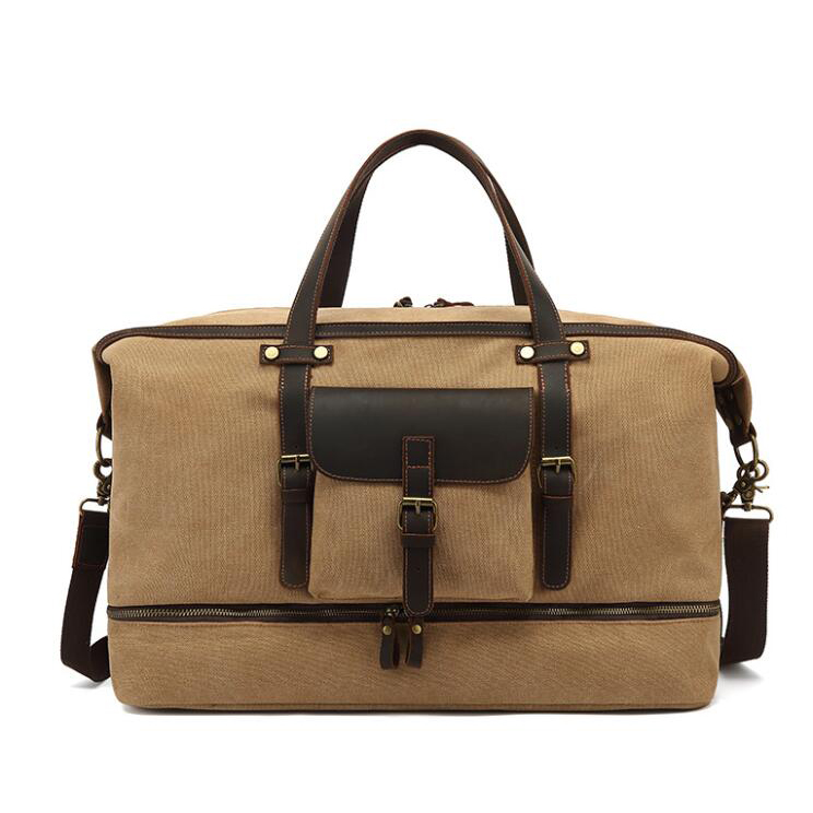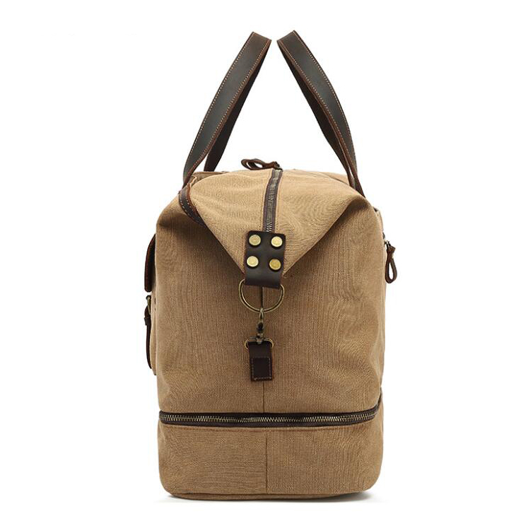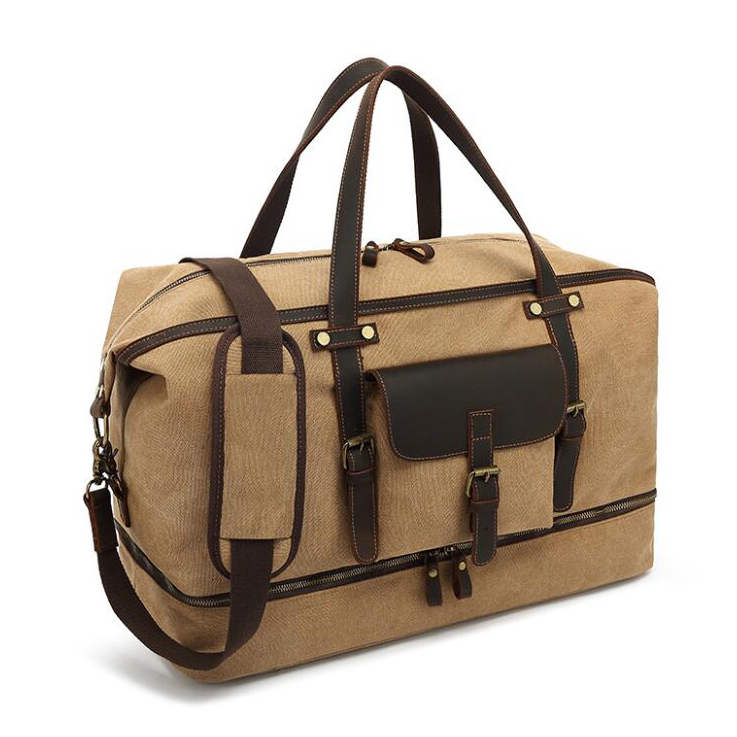 This duffel bag made of 16 Oz canvas and cow leather outside