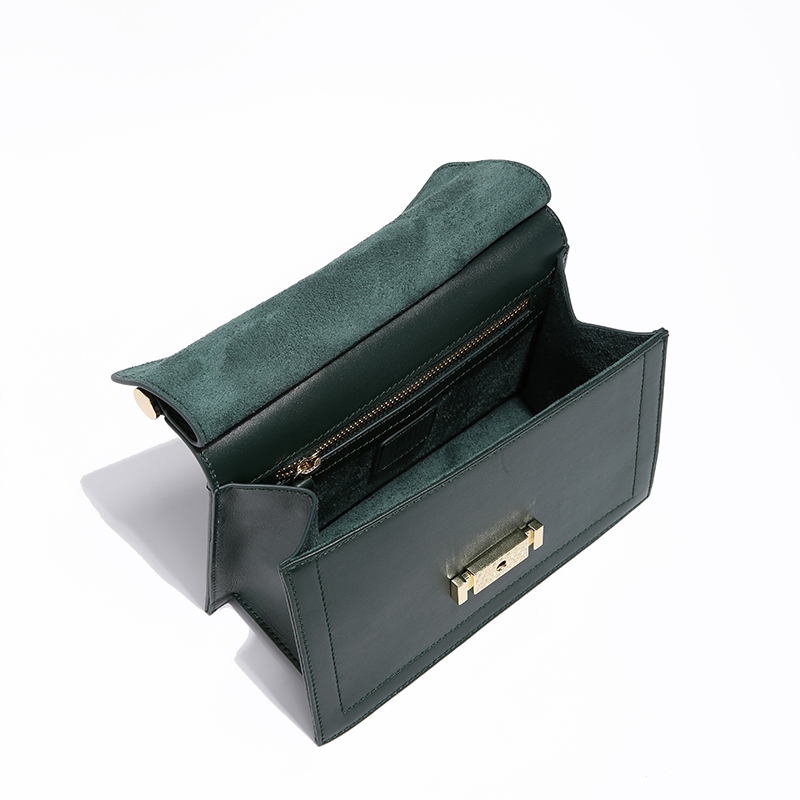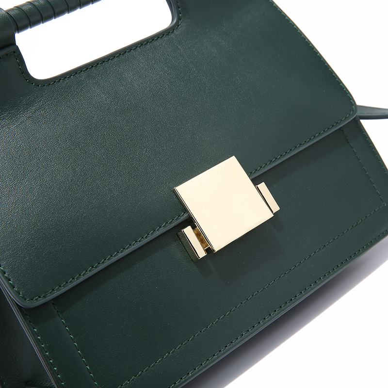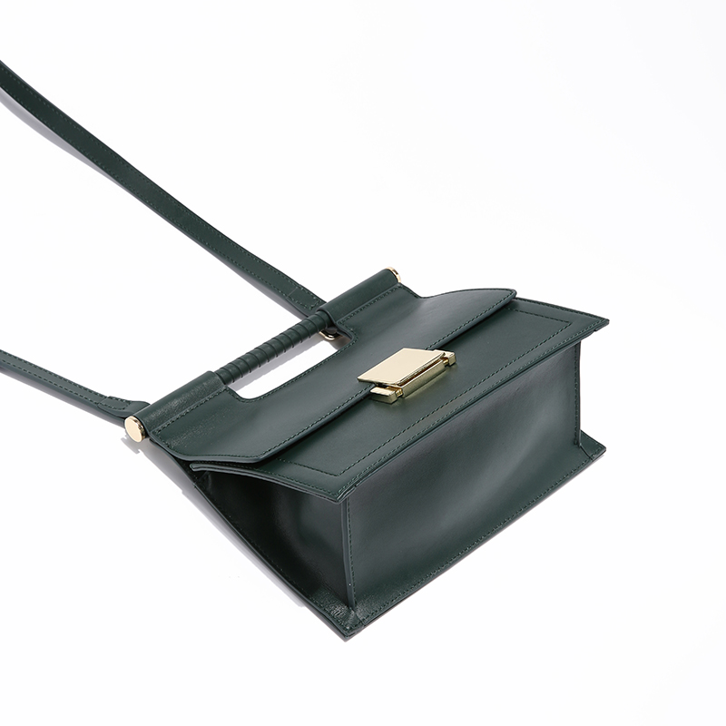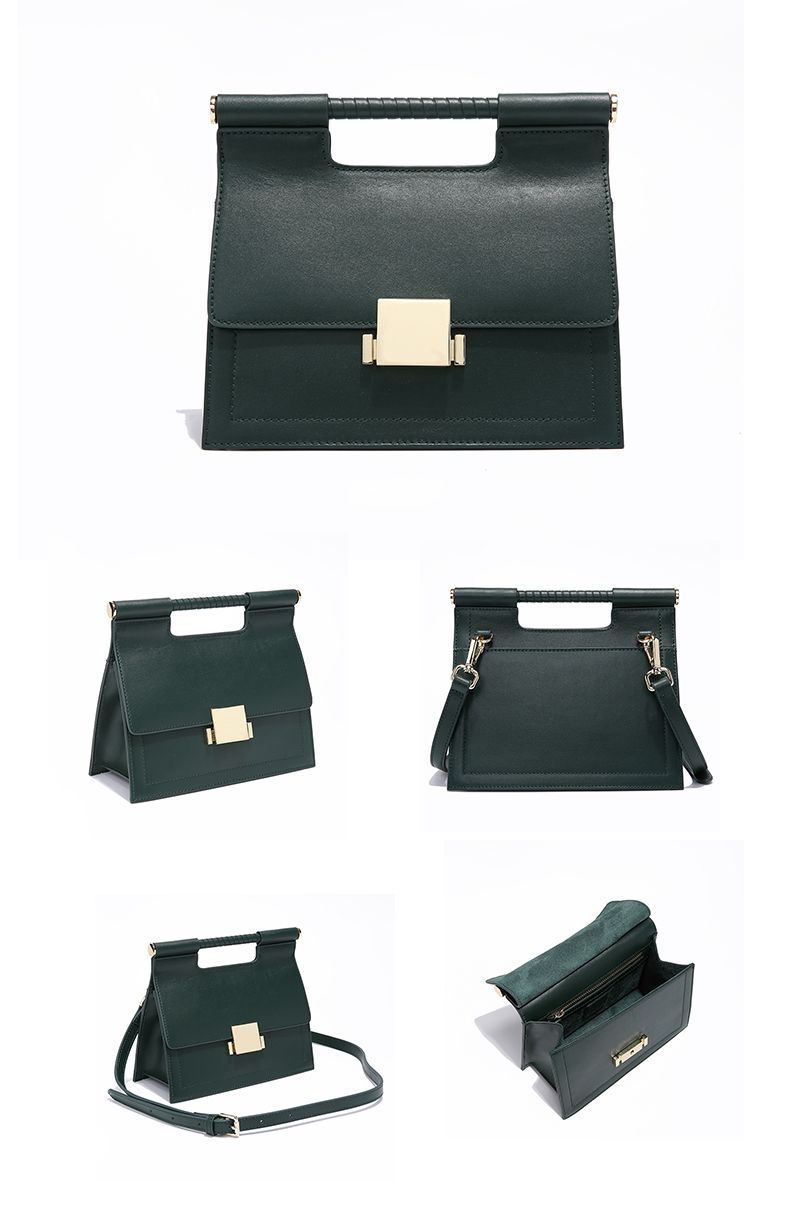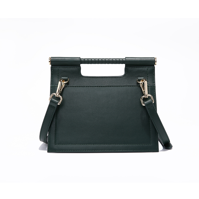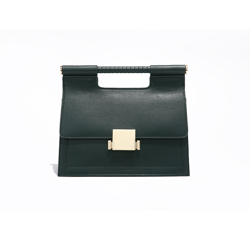 100Dark Green Color Fashion Trapezoid Shape Leather Handbag