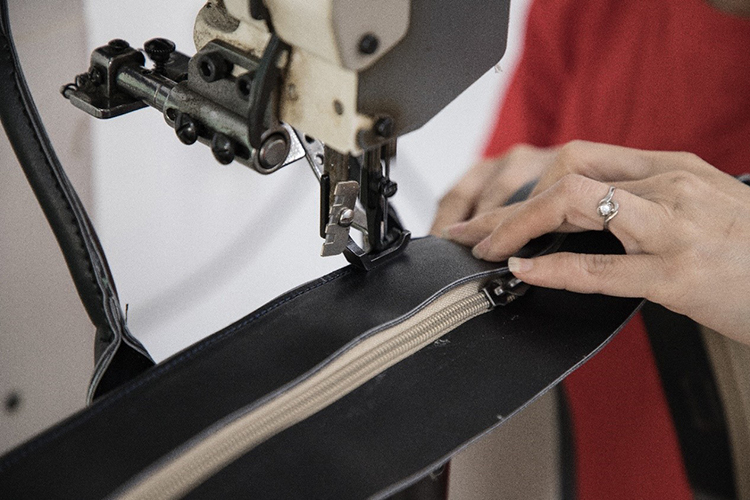 Can be pulled together for all bag elements.Putting all the elements of the bag together is a team effort. From trim and panel cutting until stitching together. It is done by