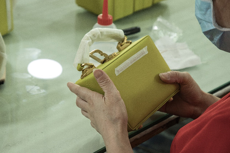 Refined in attention to detail.After checking out the first batch of bags produced on the production line, the quality control manager checks the production process at the