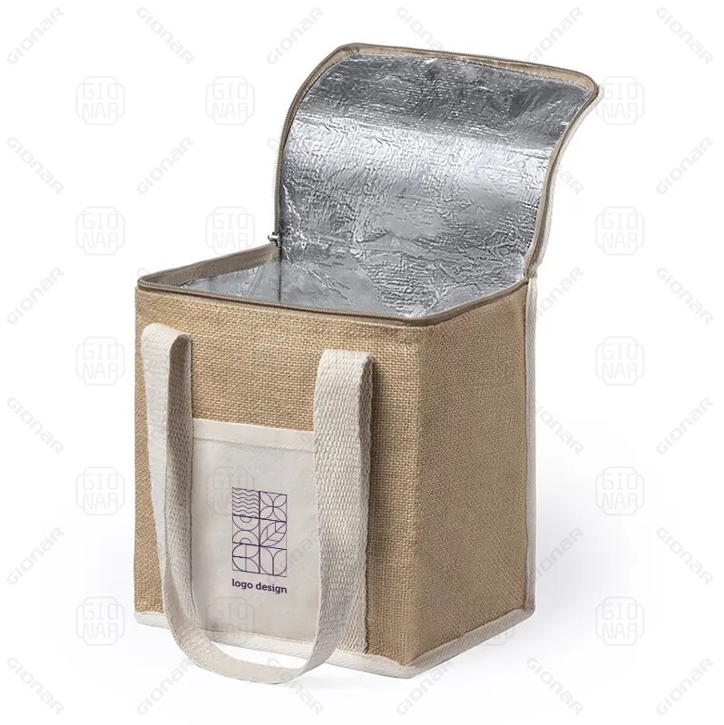 100This small jute bag is ideal for wrapping your promotional gift. Often promotional gifts are not that big, so a bag with the dimensions 20 x 22 x 13 cm is very practical. The jute bag has sturdy long handles and can be printed with your own logo or text in one or two PMS colours. This gives the bag a personal touch!