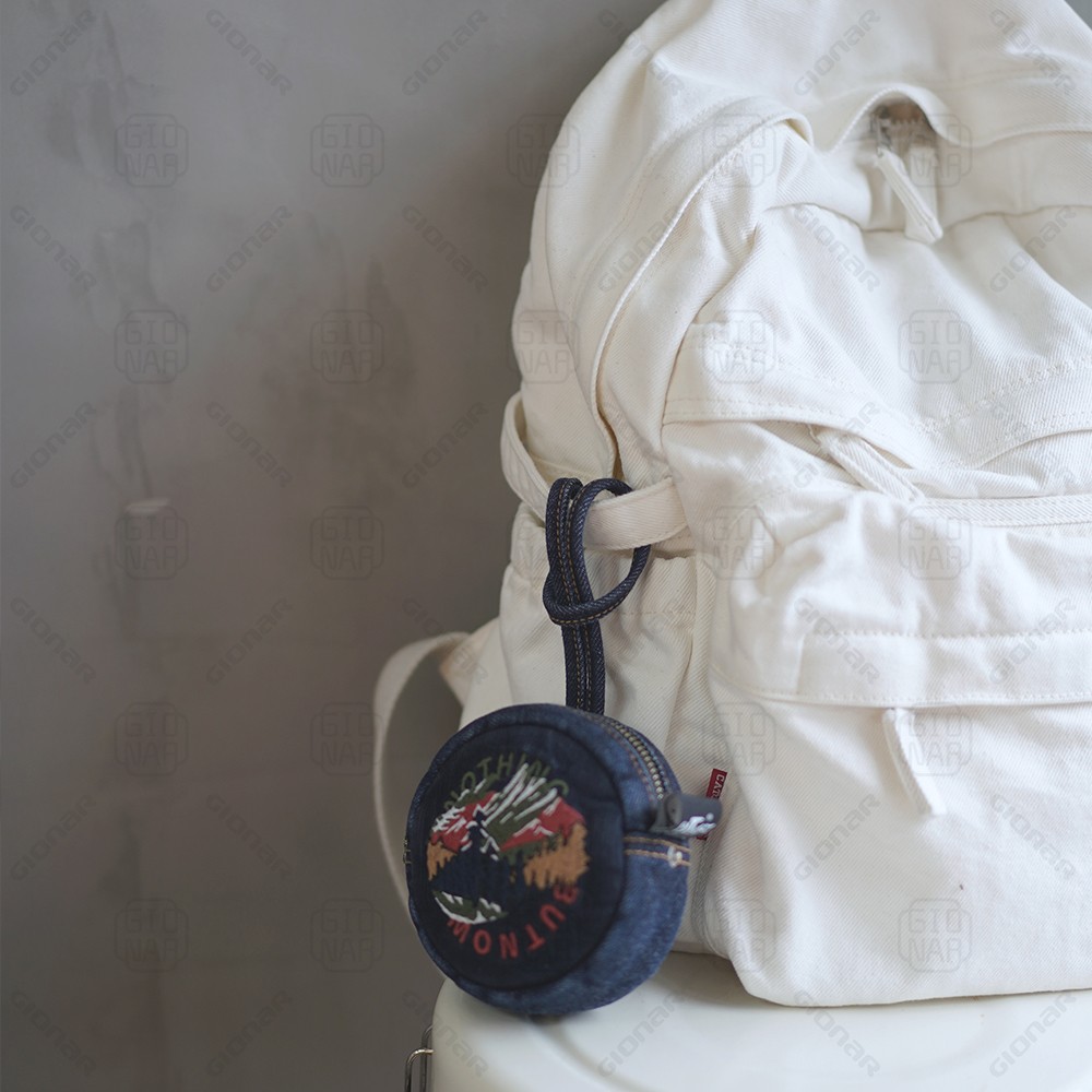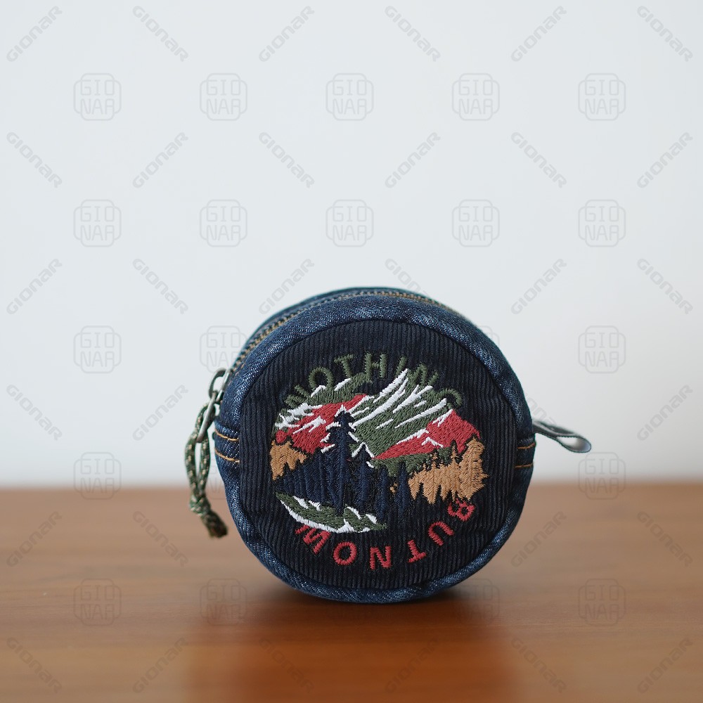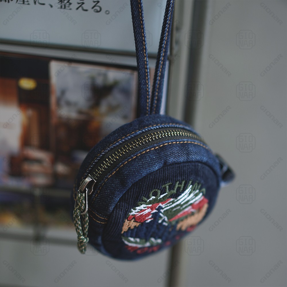 Vintage distressing denim small round purse for women
