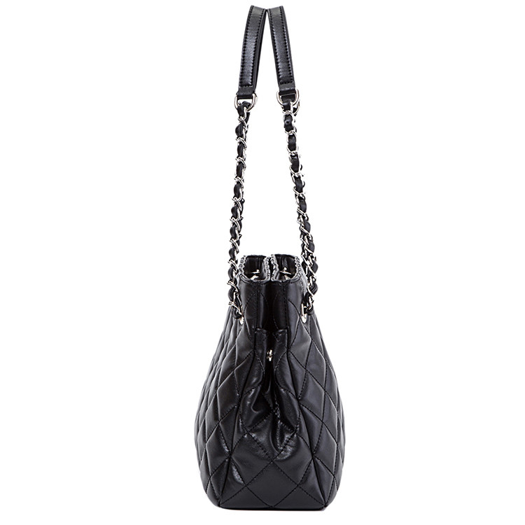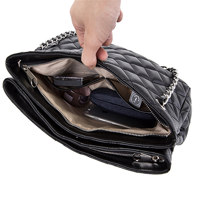 Gionar Customized Black Leather Quilting Shoulder Bag with Metal Chain
