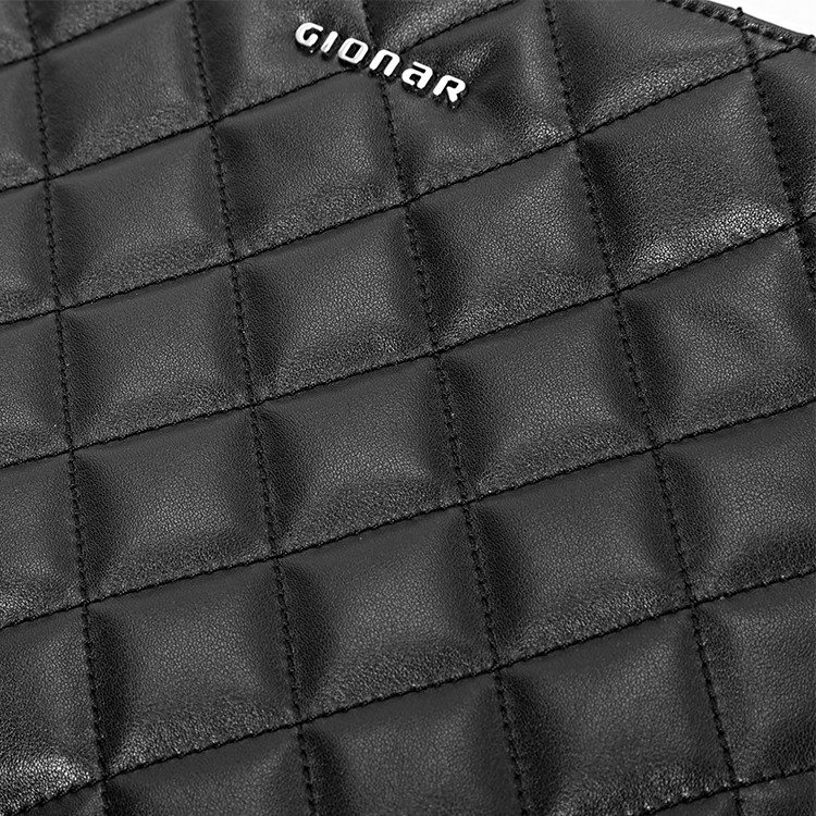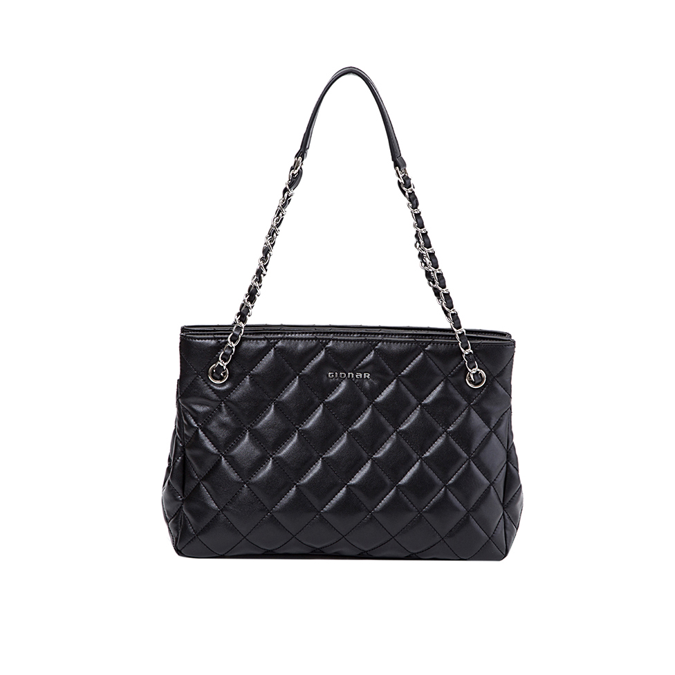 Product Name: Gionar Customized Black Leather Quilting Shoulder Bag with Metal Chain