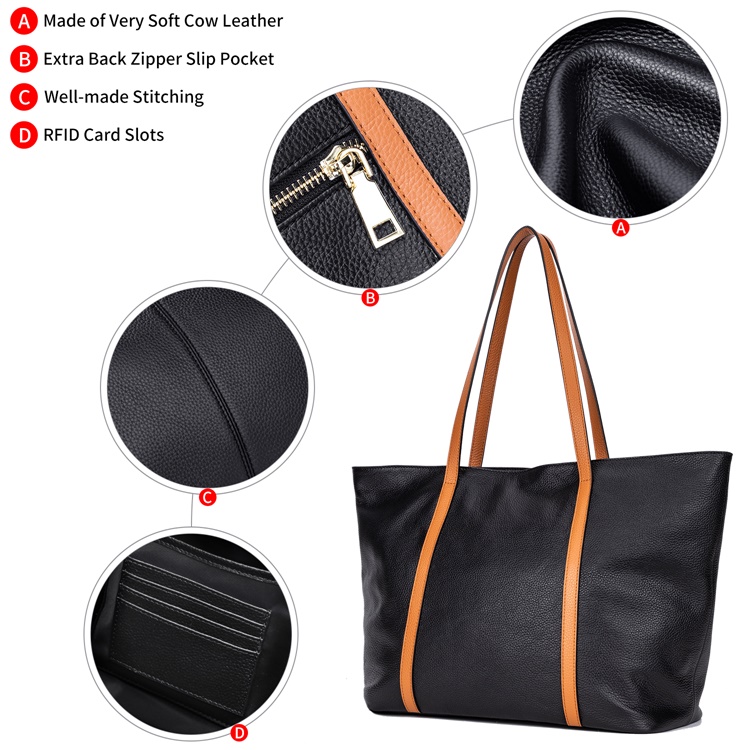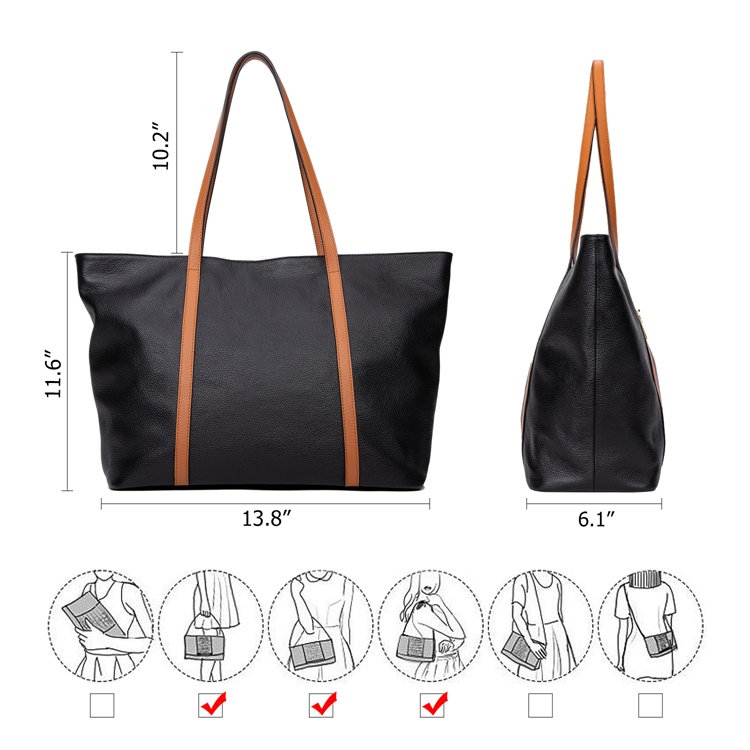 • Perfect Size to Any Outfit- This soft leather tote purse offers a just-right size to fit your essentials: a 14” laptop, working document, makeup bag, diaper, wallet, mobile phone and more. This daily tote bag is measured by 13.8″W x 4.7″TH x 11.0″D, 11.0” handle drop. This women’s leather tote bag is your must-have for any woman looking to make a statement with the perfect handbag that ties your whole ensemble together.