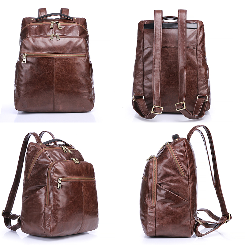 High quality vintage oil genuine cow leather backpack for men