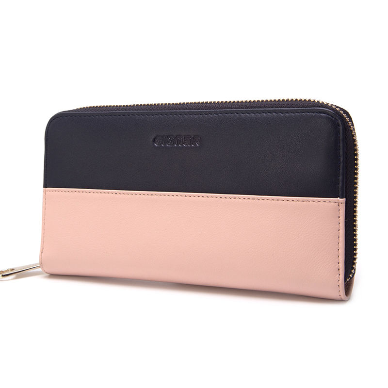 leather card zipper purse for women