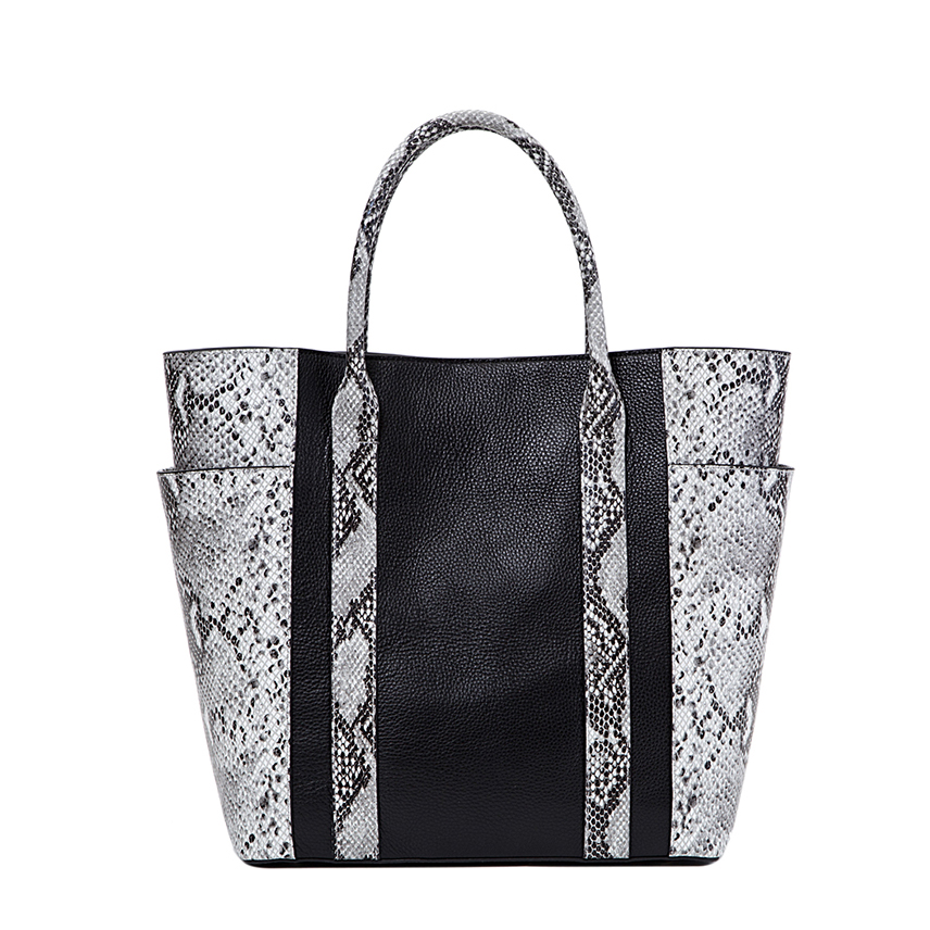 Large Design Women Genuine Leather Tote handbag with the snake embossed cowhide leather