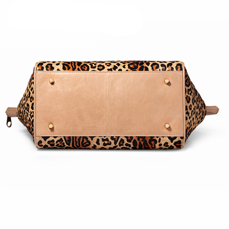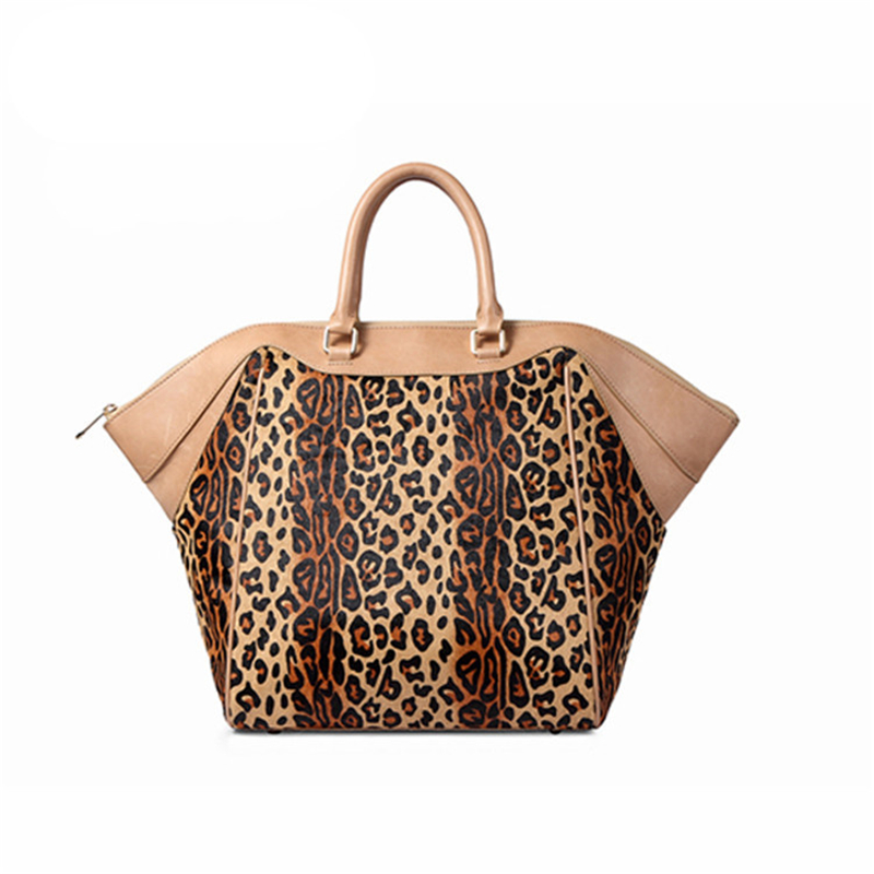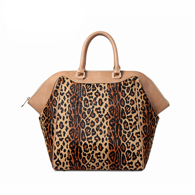 Luxury High End Quality Women Fashion Designer leopard printing cowhair genuine leather Large tote