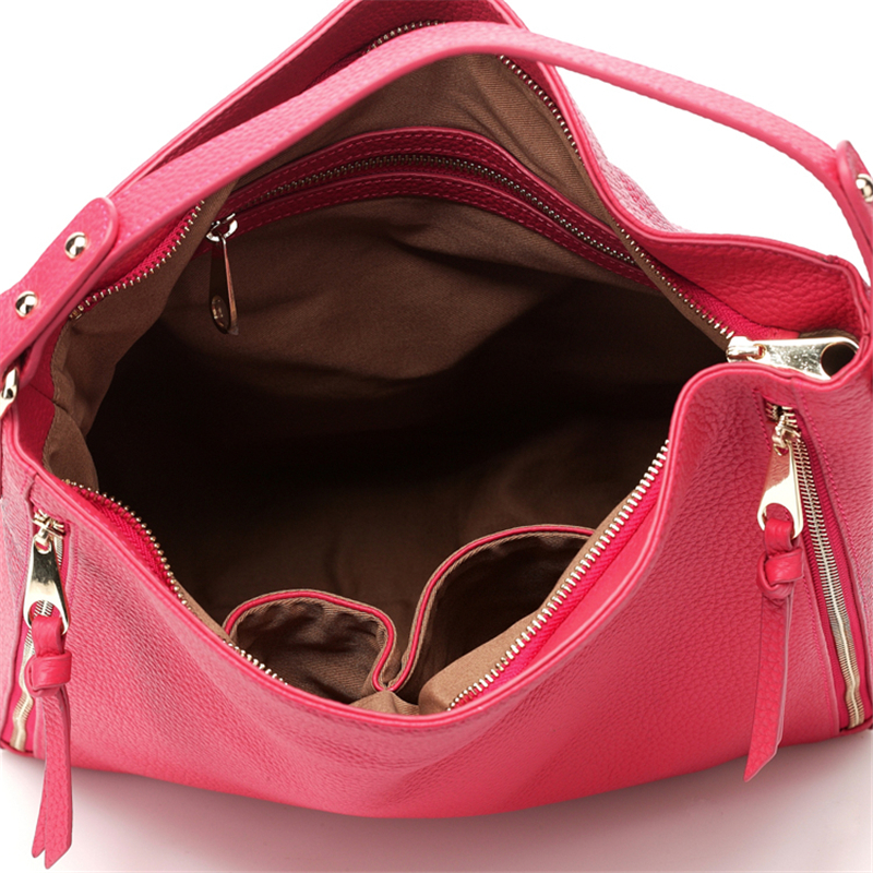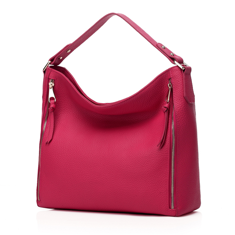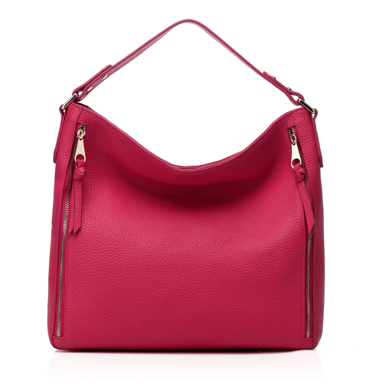 ODM Women Rose Pink Color Genuine leather shoulder bag with Brand name