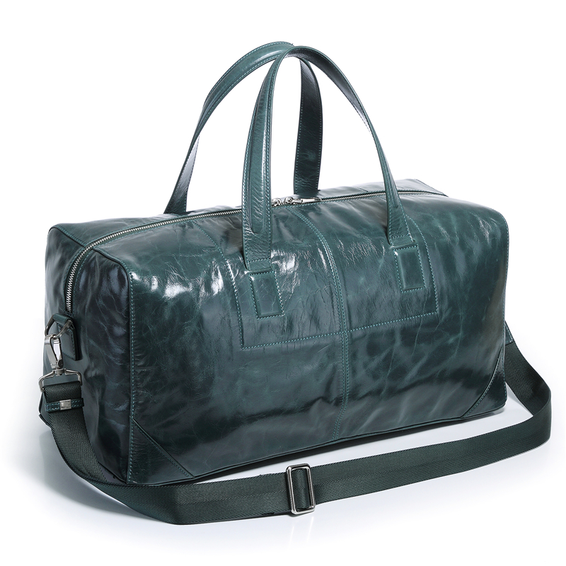 OEM green color real leather high quality men’s leather duffle bag