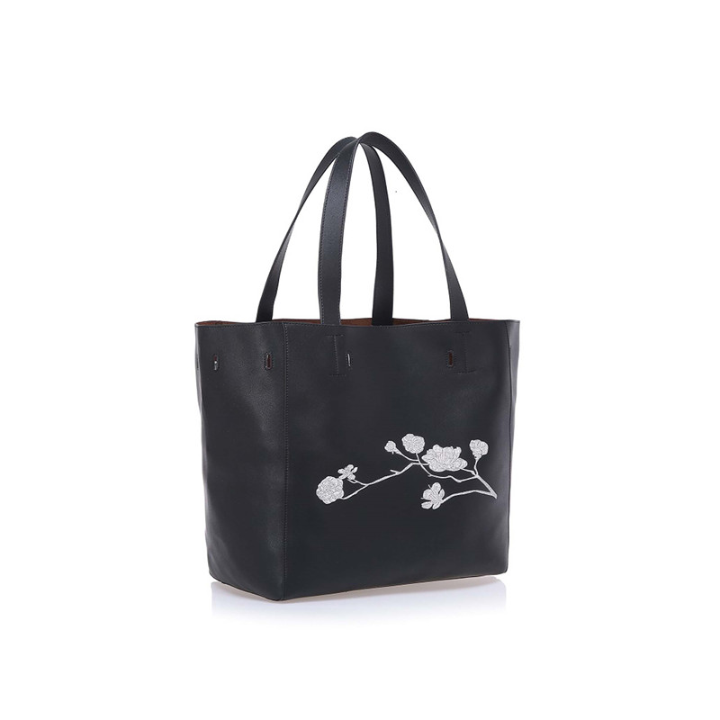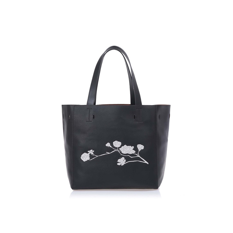 100Product Name: Online Sale Black Soft Leather Embroidery Women Tote Bag
