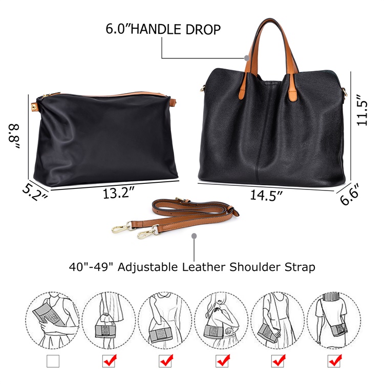 Women real leather office handbags set