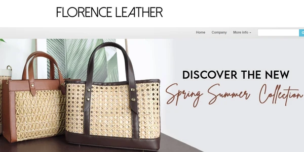 | Florence Leather | Unknown | Tote bags, clutch bags, wallets, belts |