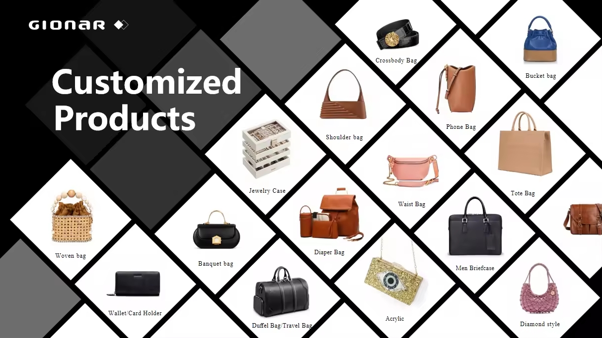 At the same time, we also provide customized hardware services and customized packaging services,as the tissues paper ,the dust bag , the plastic bag , the gift box , the carton.At Gionar,we can help your business develop better and better.