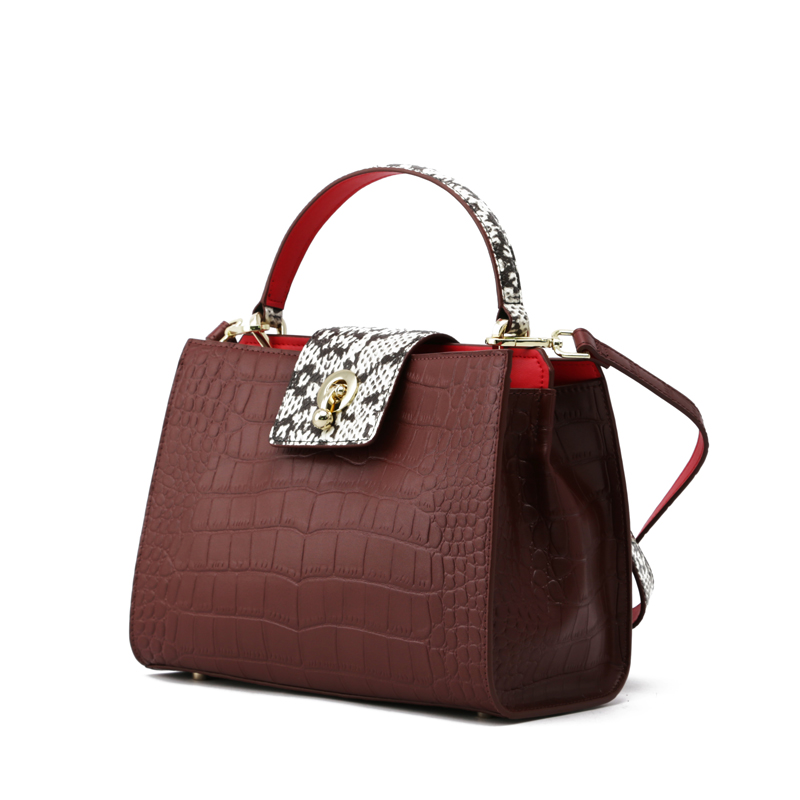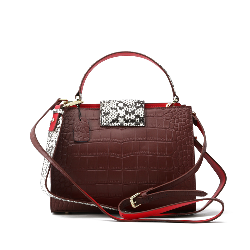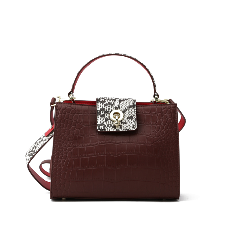 Women’s Wine Red Genuine Leather Shopping Handbags.