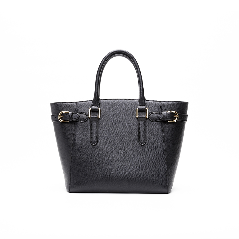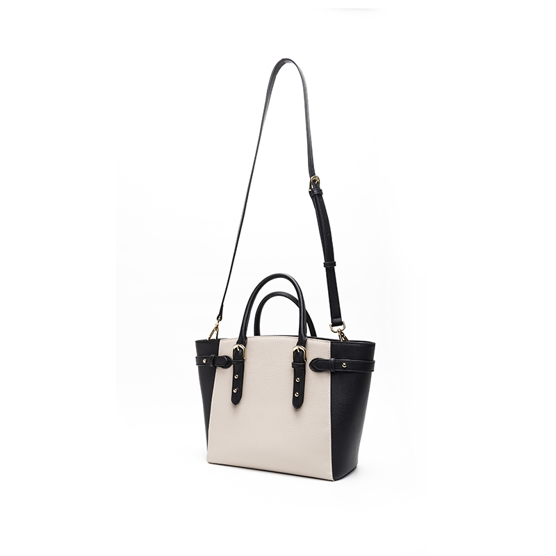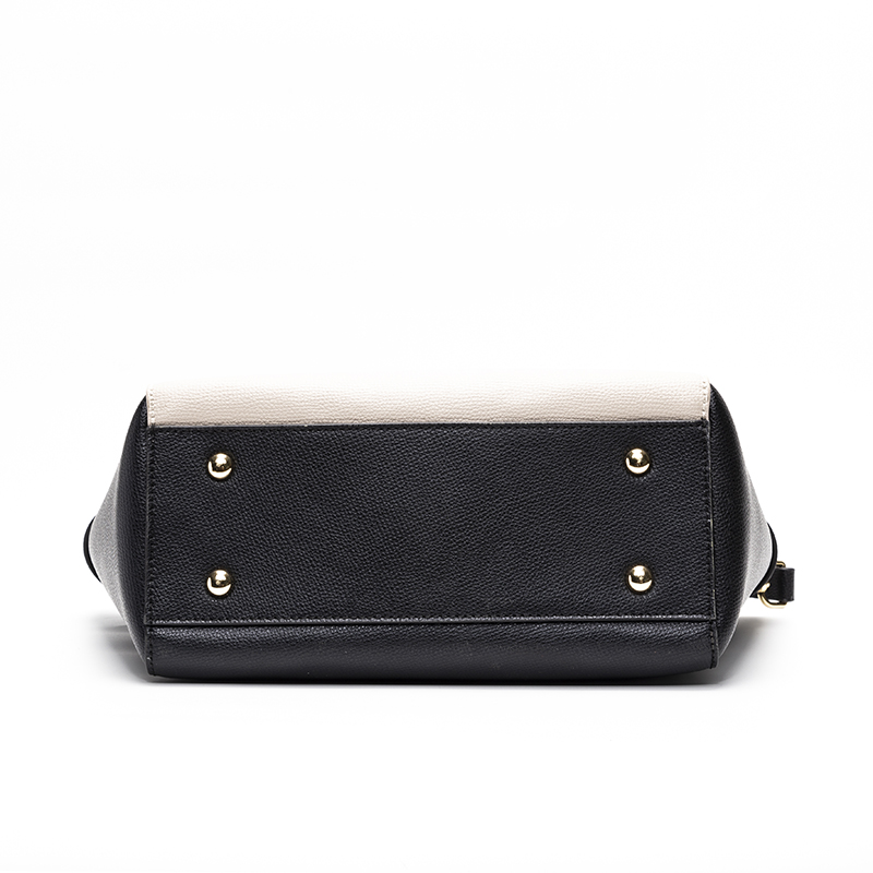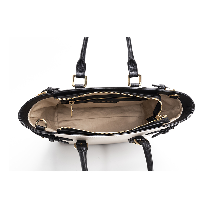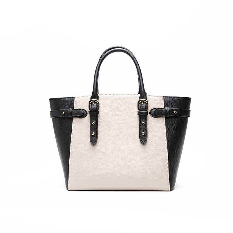 Women White and Black Genuine Cowhide Leather Tote Handbag